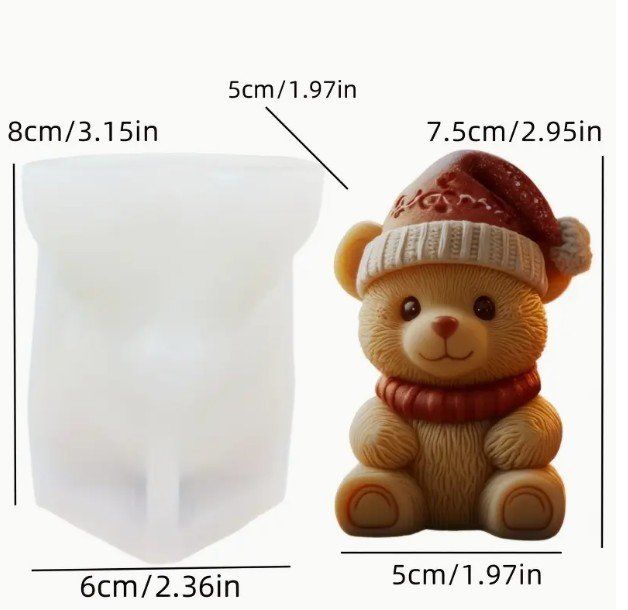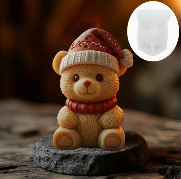 En Panchiscakes, te ofrecemos este hermoso molde en SILICONA para velas de Oso con Gorro de Navidad ideal para realizar hermosas velas . Ideal también para realizar figuras en yeso, arcilla, jabones y resina.