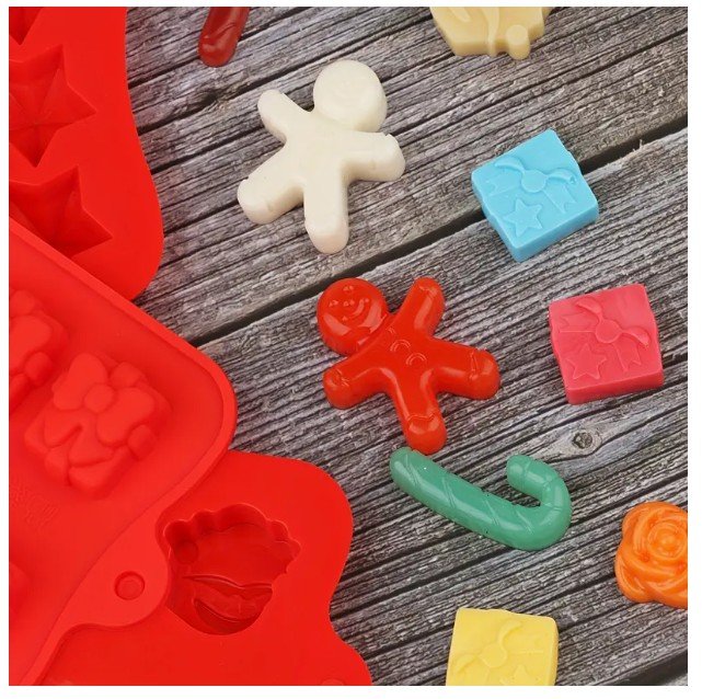 Molde Silicon de Navidad para realizar hermosos Chocolates o Caramelos CON FORMA DE BASTON DE NAVIDAD Y HOMBRE DE JENGIBRE , fácil de desmoldar.